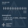 Сили ППО збили 14 із 32 запущених крилатих ракет, та 2 з 2 керованих авіаційніх ракет Х-59.